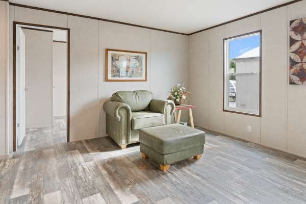 This Champion Crown model is a double-width, 28×56′, is a 1,493 sq. ft. manufactured home featuring 4 bedrooms and 2 bathrooms. This modern, multi-section home boasts an open-concept layout, a high-end kitchen with ample storage, and a spacious master suite, designed for family living.